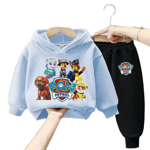 Traje con capucha de algodón de dos piezas para niños Nuevos trajes casuales para niños con Top estampado de dibujos animados de estilo extranjero en varios tamaños