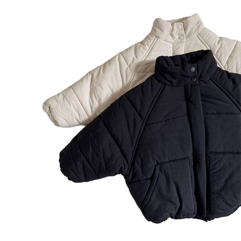 Yeni varış kış rahat katı bej siyah pamuk yastıklı ceket erkek ve kız için tek göğüslü sıcak ceket giyim